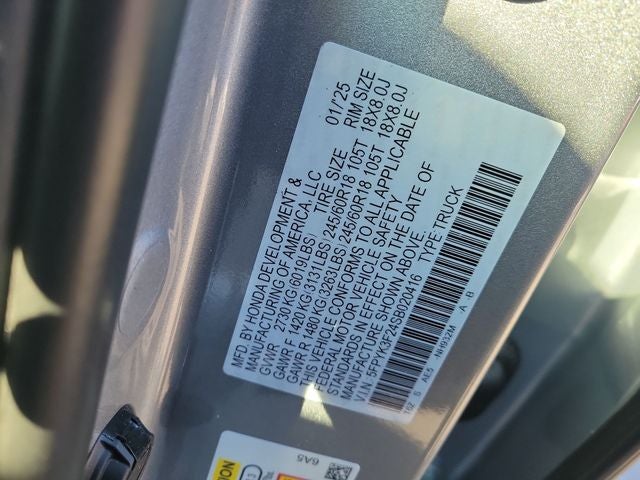2025 Honda Ridgeline Solar Silver Metallic Sport AWD 3.5L V6 SOHC i-VTEC 24V 9-Speed Automatic 4D Crew Cab