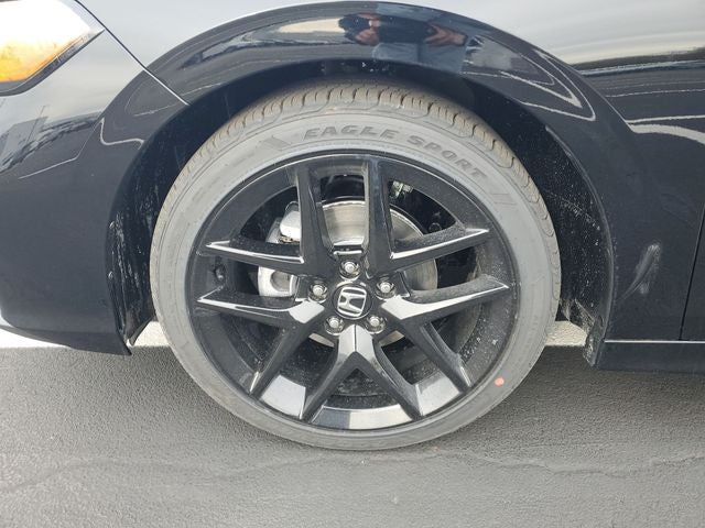 The exterior of the 2026 Civic Sport exudes a bold and sophisticated presence, with a sleek black finish that commands attention. The 18-inch gloss black alloy wheels and distinctive styling cues further accentuate the vehicle's sporty and modern aesthetic.