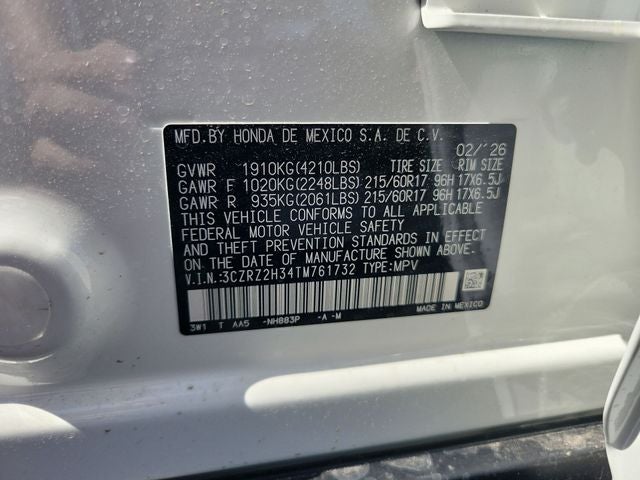 2026 Honda HR-V Platinum White Pearl LX AWD 2.0L I4 DOHC 16V i-VTEC CVT 4D Sport Utility