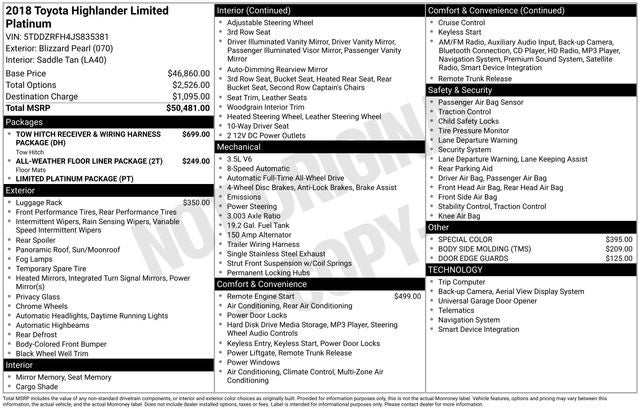 The 2018 Highlander Limited is equipped with an impressive array of features that cater to your every need: