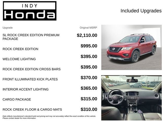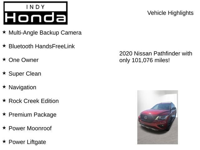 Boasting a striking Red exterior, this Pathfinder SL is more than just a handsome SUV. The Rock Creek Edition and Premium Package take this Nissan to new heights, offering a unique blend of rugged style and refined luxury. Enjoy the convenience of the power liftgate, the clarity of the navigation system, and the immersive sound of the Bose audio system.