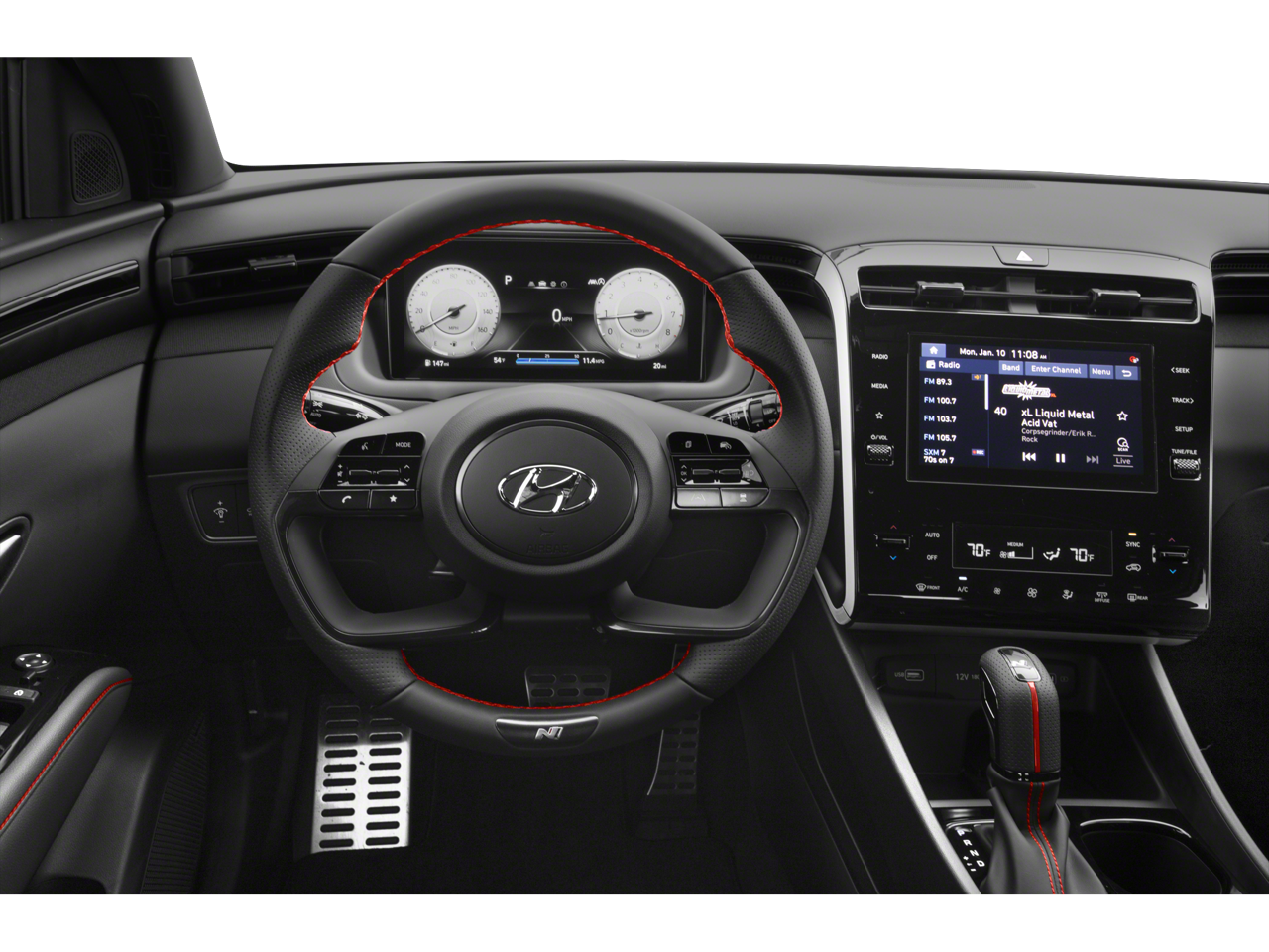 Step inside the Tucson N Line and discover a world of premium amenities that cater to your every need. The Bose Premium audio system with AM/FM/HD/SiriusXM will keep you entertained, while the heated front seats and dual-zone automatic climate control will keep you comfortable in any weather. The intuitive Apple CarPlay and Android Auto integration allow you to stay connected on the go, and the auto-dimming rearview mirror and HomeLink garage door transmitter add a touch of convenience to your daily routine.