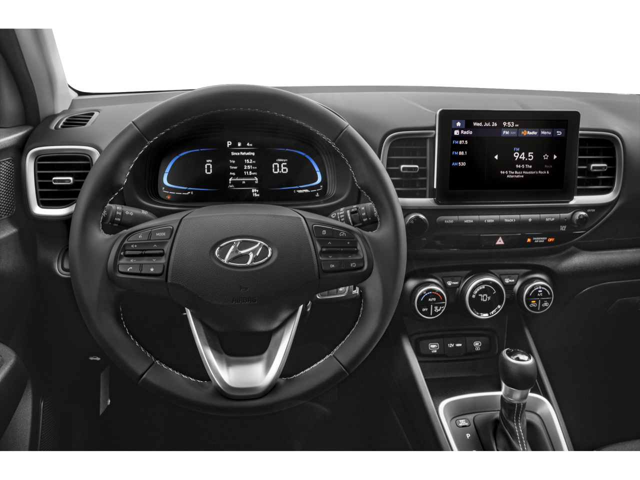 Step inside the Venue SEL and experience the perfect blend of style and functionality. The 6 speakers and AM/FM/HD Display Audio system provide a premium audio experience, while the leather-wrapped steering wheel and shift knob add a touch of sophistication. Enjoy the added peace of mind with features like ABS brakes, dual front impact airbags, and electronic stability control.