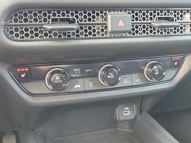 The spacious and well-appointed interior of the HR-V Sport offers ample room for passengers and cargo alike. The heated front bucket seats, along with the leather-wrapped steering wheel and shift knob, provide a touch of luxury and comfort. The split-folding rear seat offers versatility, allowing you to easily accommodate your lifestyle needs.