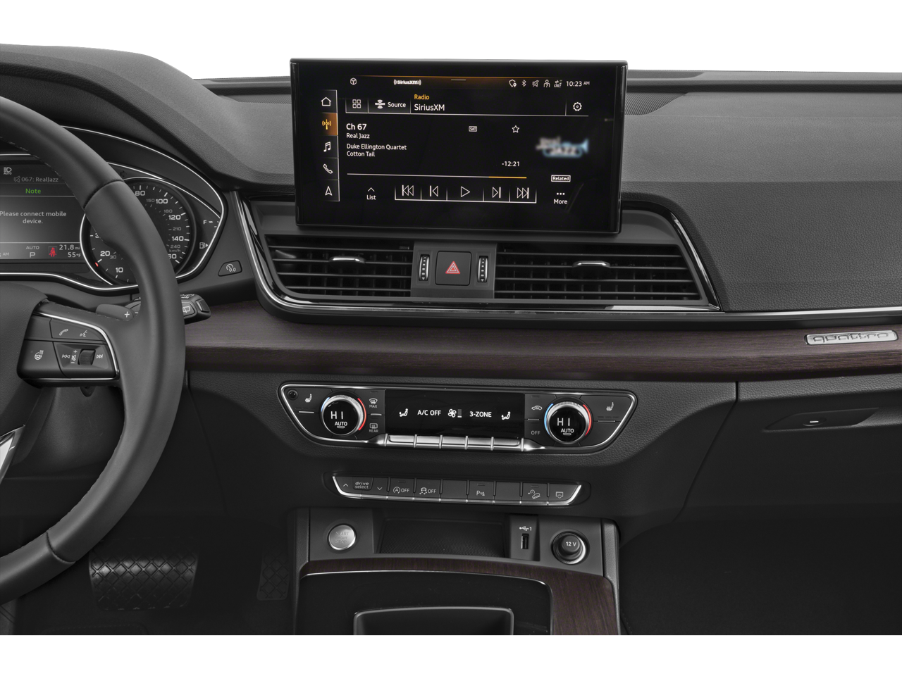 - Radio: AM/FM Stereo -inc: Audi sound system, MMI touch display w/10.1" center screen, preparation for mobile phone (Bluetooth®) and Audi smartphone interface w/wireless Apple CarPlay